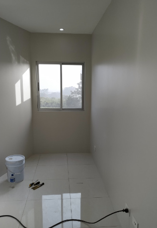 Se instaló una nueva puerta corrediza de vidrio templado de lujo y se reubicaron luminarias, tomacorrientes, interruptores y salida de datos.